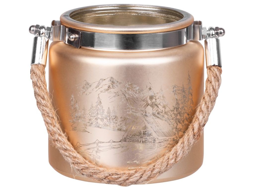 4x Svietnik MagicHome Vianoce, 10x10 cm, zlatý, s krajinkou, s lankom