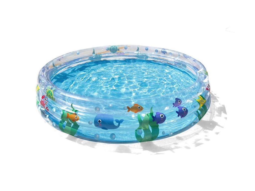 Špička medzi detskými bazénmi, ako stvorený pre detské huncútstva vo vode - nafukovací bazén Bestway® Deep Dive ponúka veľa zábavy pre deti, ktoré majú 2 a viac rokov a zároveň milujú špliechanie v bazéne počas horúcich letných dní. Tri rovnaké nafukovacie prstence s pestrofarebnou grafickou potlačou znázorňujúcou podmorský život, vytvárajú dokonalý bazén pre malých nezbedníkov a ich kamarátov. Plusom je aj materiál odolný voči prepichnutiu, ktorý zvládne dlhé roky detských vodných hier.