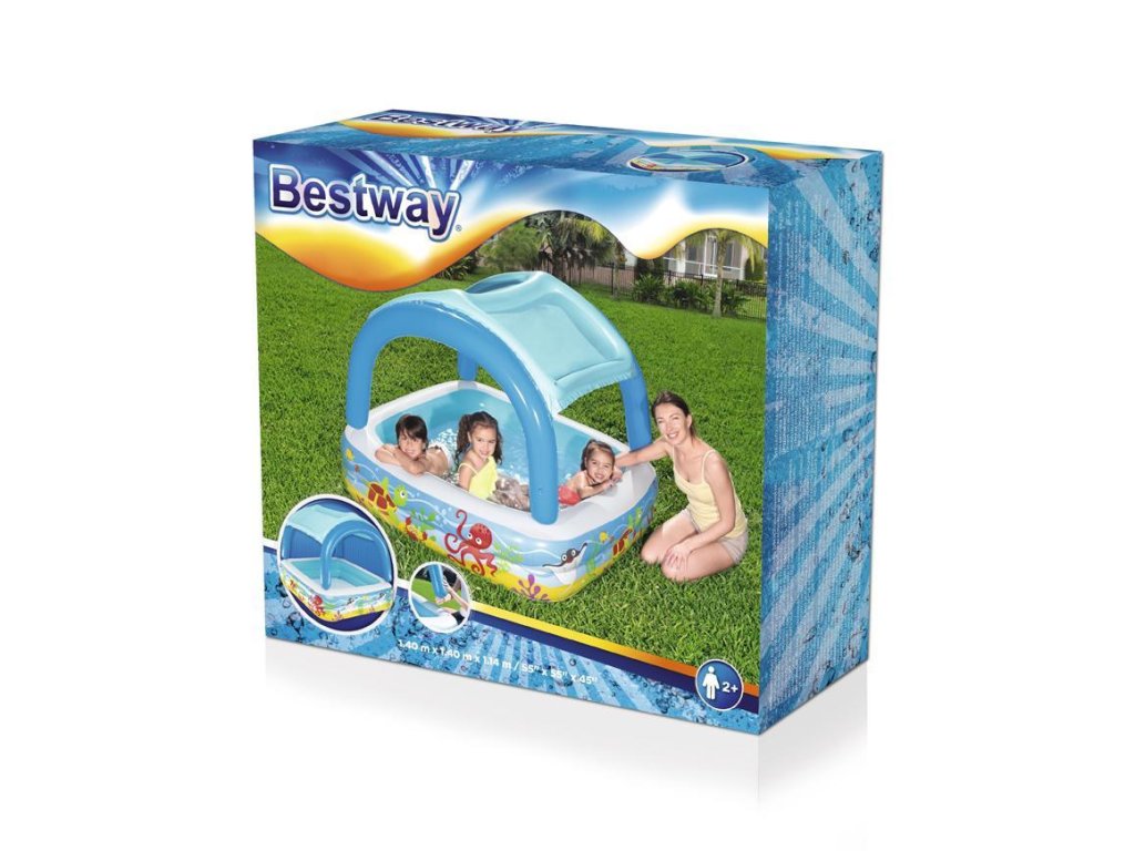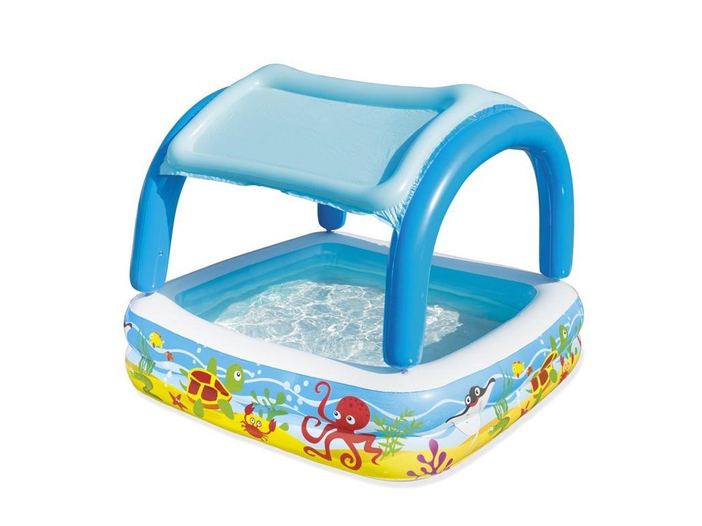 Bestway® Canopy Play Pool prináša nekonečnú zábavu vo vode pre každé dieťa staršie ako dva roky, ktoré miluje podmorský život a špliechanie v bazéne. Vstavaný prístrešok poskytuje bazénu príjemný tieň v horúcich letných dňoch. Ak sa ale slnko umierni, prístrešok je odnímateľný, a tak si Vaše deti pri hre môžu vychutnať aj vhodnú dávku slnečných lúčov.