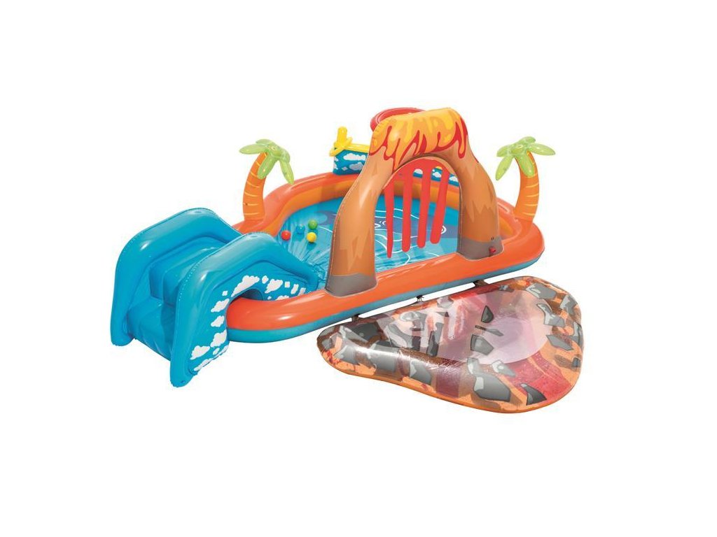 Detské zábavné hracie centrum Bestway® Lava Lagoon 53069 je vybavené štyrmi loptičkami na hranie a jedným nafukovacím kruhom na hádzanie. O pohodlie a bezpečie pri hre vašich deti sa postará nafukovací vankúš umiestnený na dne bazéna. Deti si užijú veľa zábavy šmýkaním sa po šmykľavke a hádzaním loptičiek. Hracie centrum je vhodné pre všetky deti od 2 rokov. Prinesie letné dni plné zábavy.