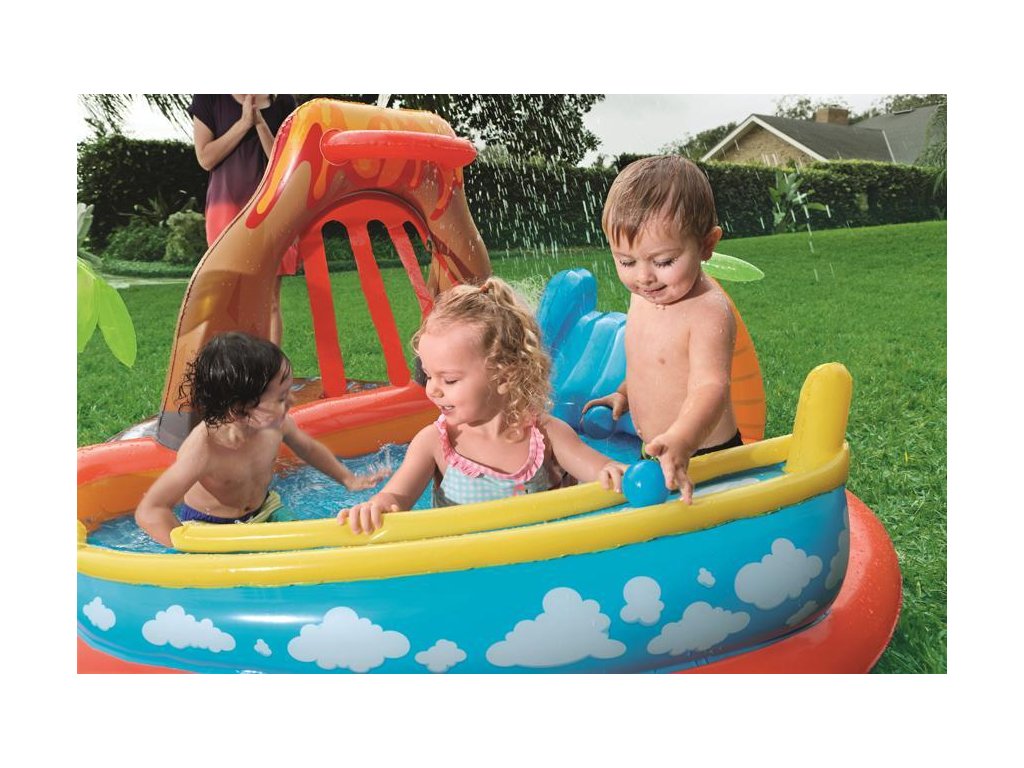 Detské zábavné hracie centrum Bestway® Lava Lagoon 53069 je vybavené štyrmi loptičkami na hranie a jedným nafukovacím kruhom na hádzanie. O pohodlie a bezpečie pri hre vašich deti sa postará nafukovací vankúš umiestnený na dne bazéna. Deti si užijú veľa zábavy šmýkaním sa po šmykľavke a hádzaním loptičiek. Hracie centrum je vhodné pre všetky deti od 2 rokov. Prinesie letné dni plné zábavy.