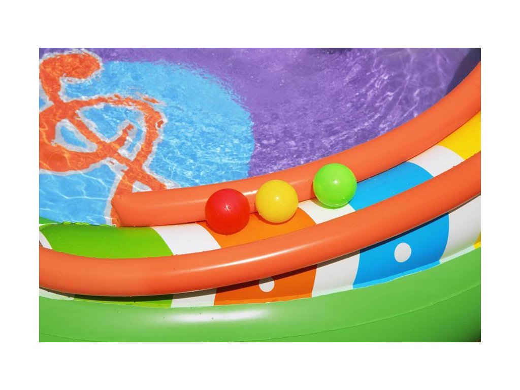 Detské hracie centrum Bestway® 52331 je vybavené priestrannou šmykľavkou, veľkým a malým bazénikom a nafukovacím oblúkom. Hracie centrum je vhodné pre deti od 2 rokov. Deti sa v bazéniku zabavia 6 loptičkami na hranie, či hrou s hádzaním kruhu. Užijú si tak slnečné dni plné zábavy.