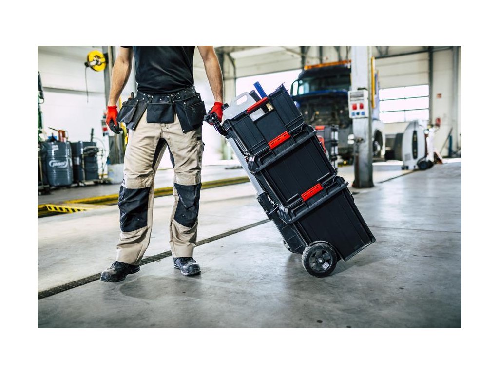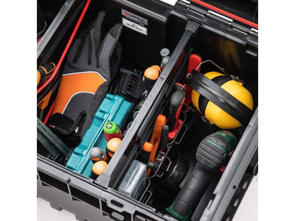 Verzia veka VARIO je vybavená prídavnými konektormi, ktoré umožňujú kombinovať túto verziu veka s modelmi boxov na náradie z rady Qbrick System PRO - 500, Toolcase, Toolbox, Organizer 100, 200 a 300 a alternatívne s toolboxom PRO 600. . Táto unikátna verzia toolboxu umožňuje užívateľovi kombinovať prvky z dvoch produktových radov. Zosilnená konštrukcia veka a tela zaručuje vysokú nosnosť (50 kg) a odolá tlaku až 120 kg.