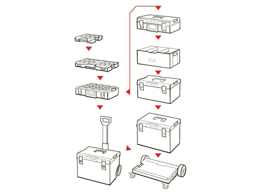 ONE 350 je veľký box na náradie s objemom 38 l. Je schopný pojať veľký objem elektrického náradia a ručného náradia. Každá skrinka na náradie je vybavená flexibilným tesnením, ktoré poskytuje úplnú ochranu proti prachu a vode. Je vybavená dvoma nastaviteľnými priehradkami - jedna s elastickými popruhmi a druhá s priehradkou Multi, čo uľahčuje udržiavanie poriadku vo vnútri skrinky na náradie vďaka rôznym držiakom na ručné náradie. Odnímateľný viacnásobný rozdeľovač možno použiť ako samostatný nosič náradia.