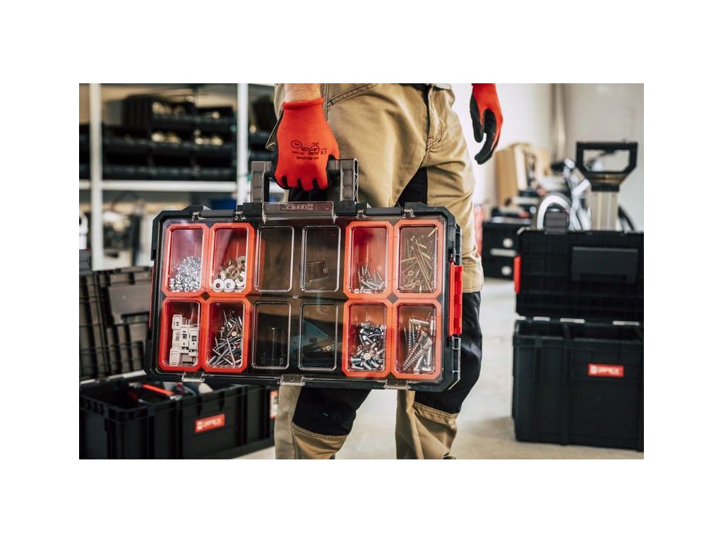 Modulárny organizér na menšie príslušenstvo. Polykarbonátové veko, polyamidové západky a pevná rukoväť zaisťujú bezpečnosť a pohodlie. Organizér má 9 nádob.