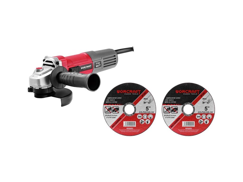 Brúska Worcraft AG08-115P, 710W, 115 mm, M14, uhlová, PROMO + 2 kotúče