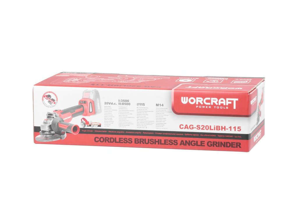 Akumulátorová uhlová brúska Worcraft CAG-S20LiBH-115 je určená na brúsenie, rezanie a odstraňovanie kovových a kamenných materiálov bez použitia vody. S vhodným príslušenstvom je možné použiť brúsku aj na čistenie a brúsenie. Brúska disponuje kotúčom s priemerom 125 mm a pracuje rýchlosťou až 8 500 otáčok/ min. Bezpečnostný vypínač a ochranný kryt zaisťujú bezpečnosť pri používaní brúsky.
