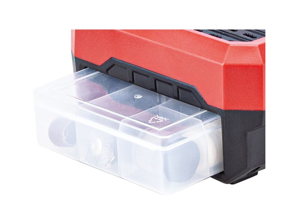 Akumulátorová priama brúska Worcraft CEMG-S20Li sa používa na detailné obrábanie kovov, plastov, dreva a podobných materiálov s použitím vhodného obrábacieho nádstavca. Ľahké ovládanie zaručuje pohodlnú manipuláciu pri práci. Dosahuje rýchlosť otáčok od 5 000 - 33 000 min-1, ktoré si nastavíte regulátorom otáčok. Súčasťou balenia je gravírovací hrot, špicatá diamantová frézka, oceľová kefka, HSS vrtáky, unášače, kotúče, sada brúsnych papierov a teliesok.