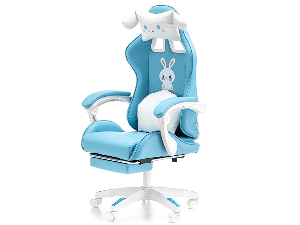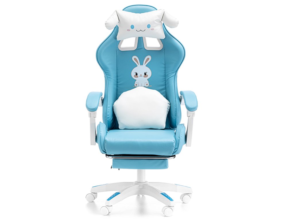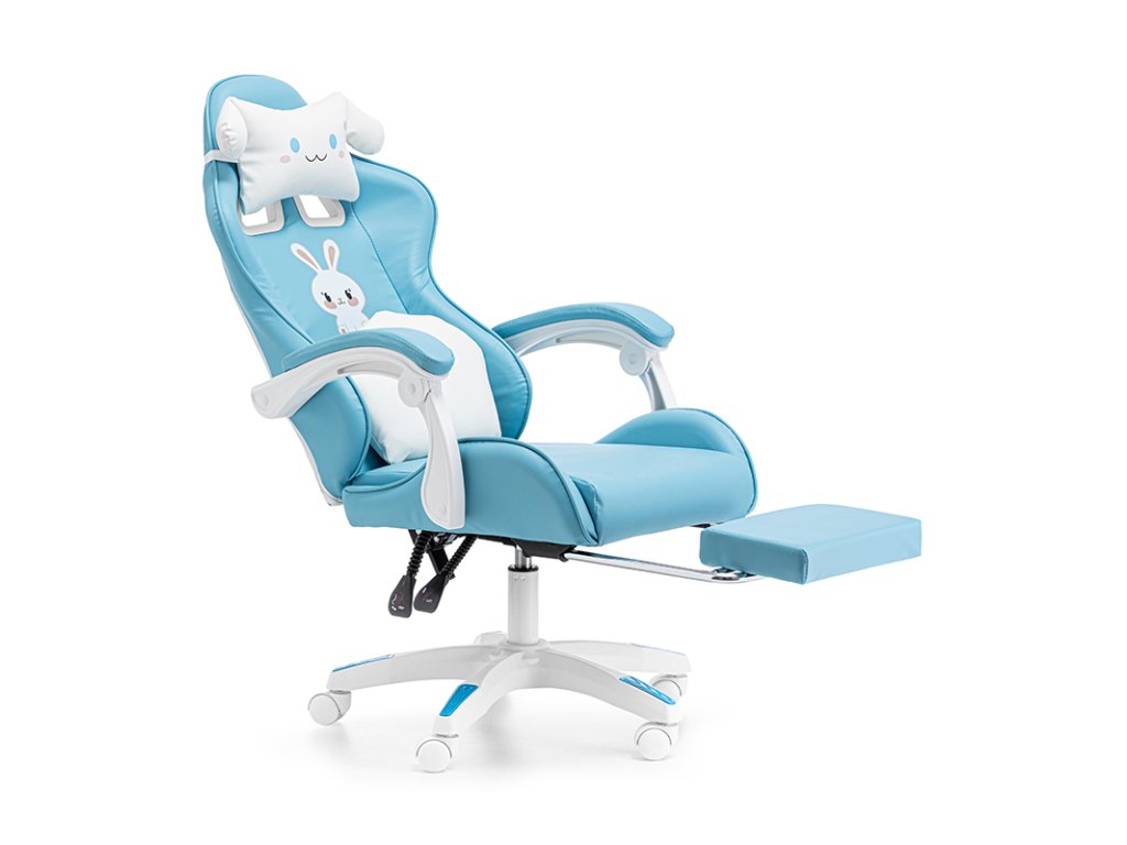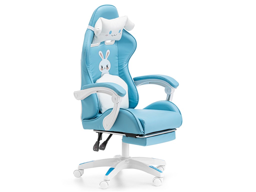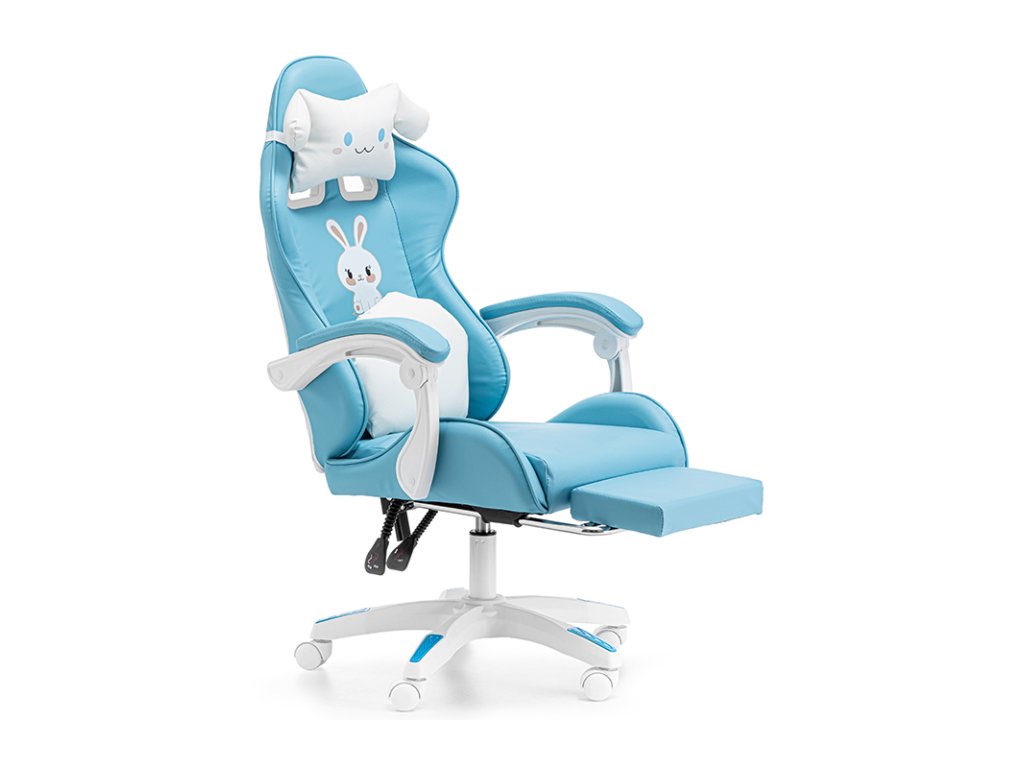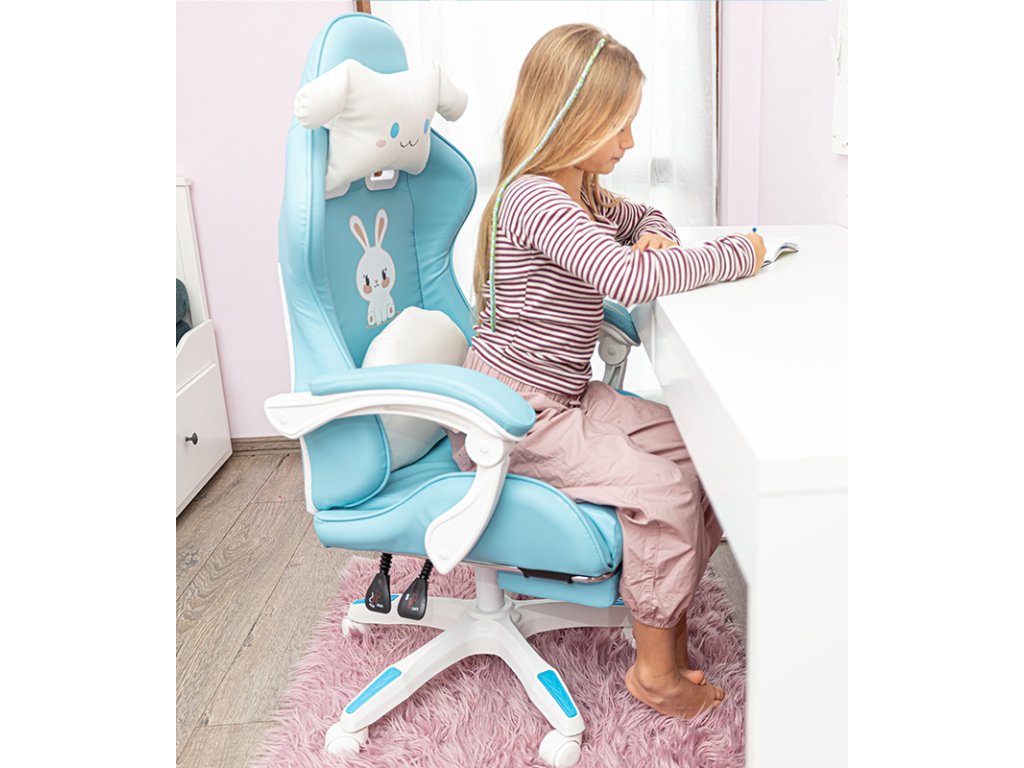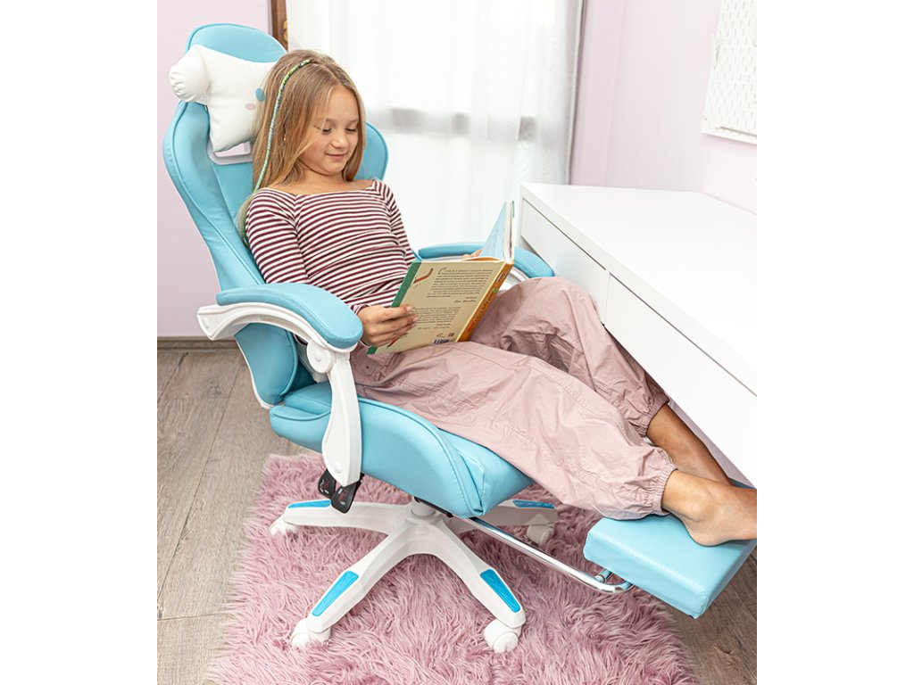 Detská moderná herná stolička s masážnym vankúšom a podnožkou Mráčik-Modrá