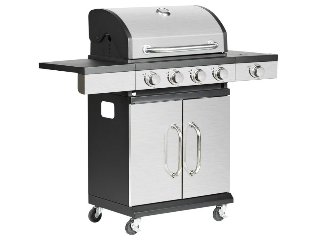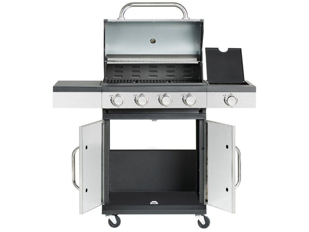 Plynový 4-horákový gril je ideálny na rýchlu prípravu jedál. Súčasťou je tiež jeden samostatný horák na pravej strane, pre potrebu jednoduchého varenia vonku. Na ľavej strane sa nachádza menší odkladací priestor, kde si môžeme uložiť grilovacie kliešte a pod. Hlavná grilovacia časť sa nachádza pod vrchným kovovým krytom. Varná mriežka je vyrobená zo smaltovanej ocele. Výhodou grilu je zabudovaný ukazovateľ teploty z nehrdzavejúcej ocele, vďaka čomu nemusíte jedlo neustále kontrolovať. Pod grilovacou časťou sa tiež nachádza odkladací priestor, ktorý môžete využiť na umiestnene plynovej fľaše. Pre funkčnosť grilu sa používa štandardná plynová fľaša s hmotnosťou náplne do 5 kg. Z hľadiska čistenia na tomto grile oceníte, že sa mastnota po grilovaní odstraňuje veľmi jednoducho. Rozmery grilu sú 120 x 48 x 110 cm. V prípade potreby je podstava vybavená dvomi kolieskami, ktoré vám nutný prenos uľahčia.Kiegészítő paraméterek