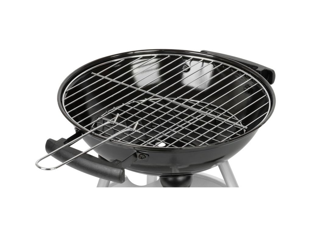 Robustná kovová konštrukcia zaručuje stabilitu a dlhú životnosť grilu. Nastaviteľná výška roštu umožňuje jednoduchú reguláciu teploty pri príprave jedla. Praktická odkladacia polička poskytuje priestor na grilovacie pomôcky alebo suroviny.