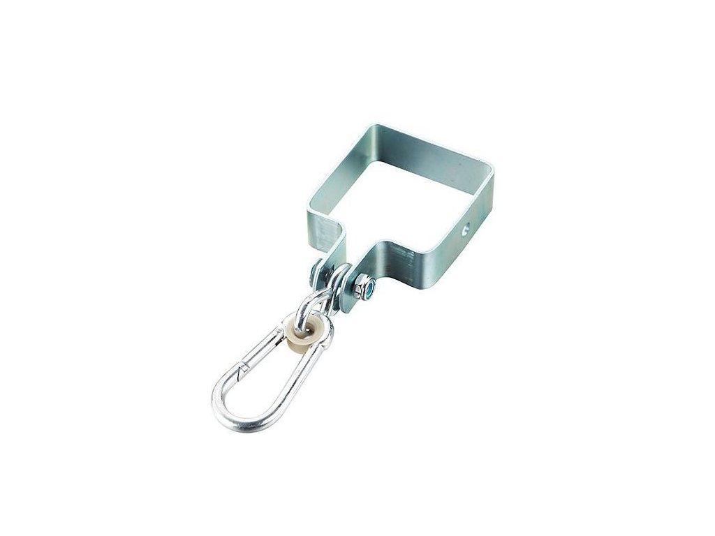 Hák alebo tiež karabína slúži pre upevnenie a zaistenie potrebných častí, ako je napríklad závesná hojdačka. Závesné konce hojdačky jednoducho vložíte do karabíny a druhú časť upevníte na hojdačku. Povolený priemer hranolu, ktorý je možné upevniť pomocou tohto háku, je 90 x 90 mm.