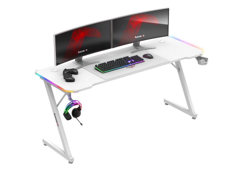 Herný stôl Huzaro Hero 4.8 RGB White + PODLOŽKA XXL