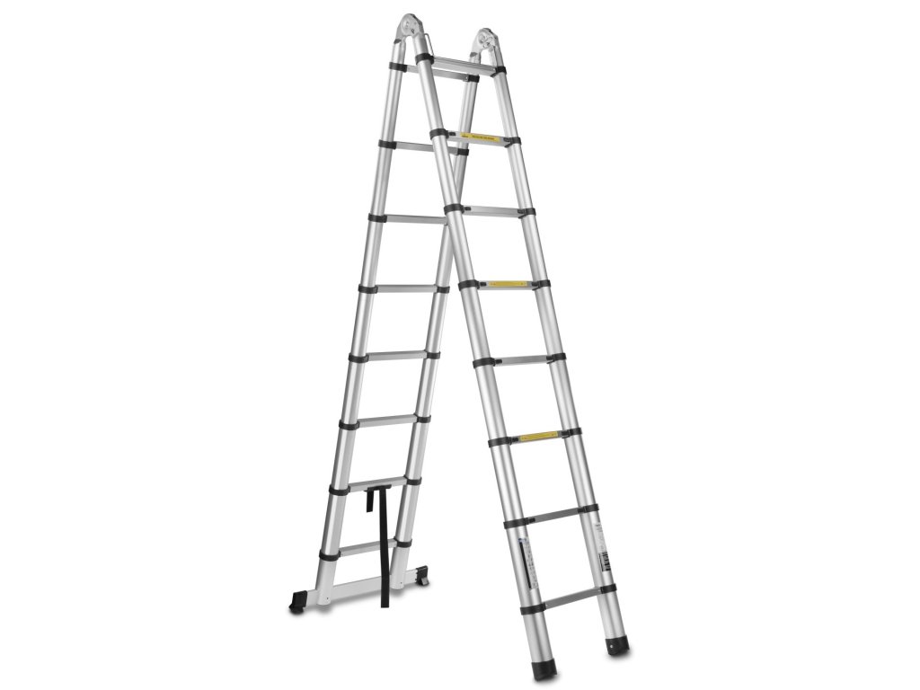 Teleskopický rebrík sa skladá z častí, ktoré sa dajú vysúvať alebo zasúvať, čo umožňuje nastavenie dĺžky rebríka. Vďaka tomu je rebrík všestranný a prispôsobivý rôznym úlohám, ako je práca v rôznych výškach alebo v ťažko dostupných miestach. Okrem toho je možné vďaka kĺbom meniť tvar kĺbového rebríka. Dá sa umiestniť do rôznych uhlov alebo tvarovať do tvaru A, L alebo dokonca do iných konfigurácií v závislosti od vašich potrieb. Rebrík je vybavený uzamykacími mechanizmami, ktoré držia časti rebríka na mieste a zaisťujú stabilitu a bezpečnosť pri používaní rebríka v rôznych tvaroch a polohách. Tieto mechanizmy umožňujú uzamknúť rebrík vo zvolenej konfigurácii, čím sa zabezpečí stabilita. Tým sa zabráni náhodnému skĺznutiu častí rebríka.