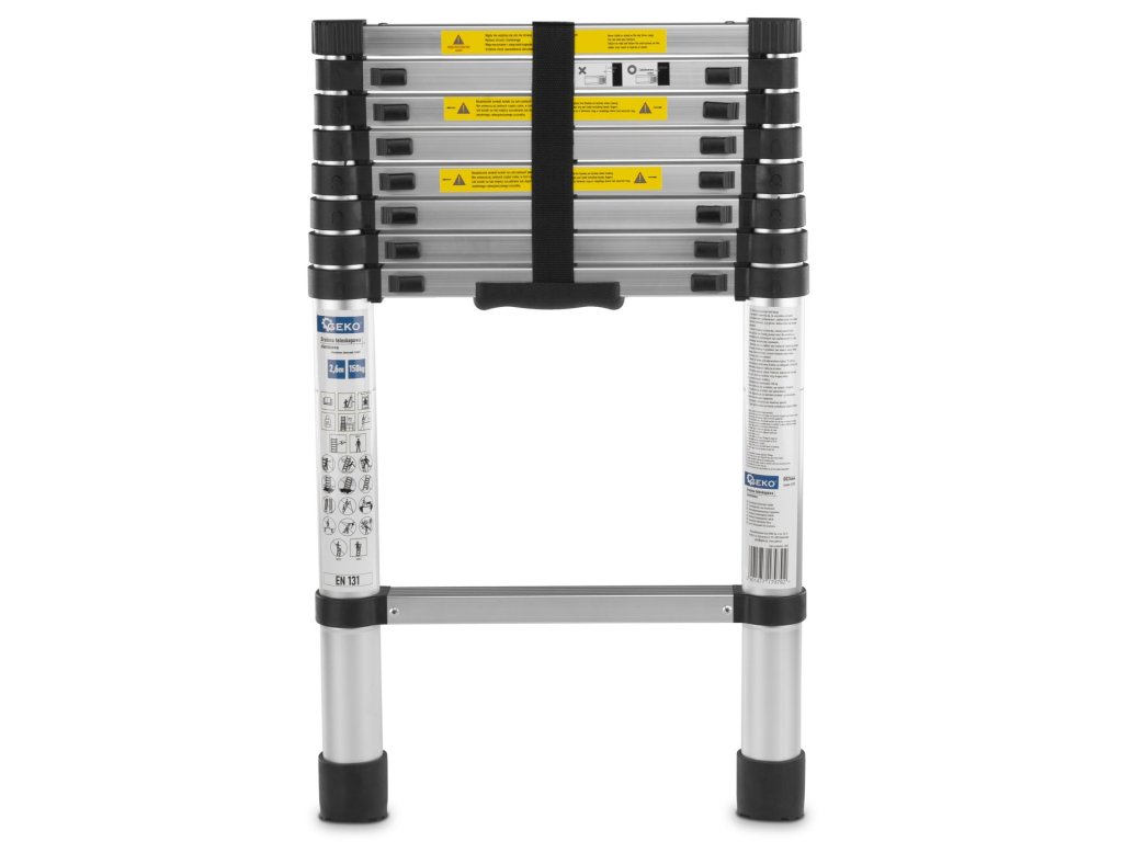 Hliníkový teleskopický rebrík je typ rebríka, ktorý sa skladá a rozkladá, čo vám umožňuje nastaviť jeho dĺžku podľa vašich potrieb. To znamená, že sa dá ľahko skladovať a prepravovať v kompaktnejšej forme.