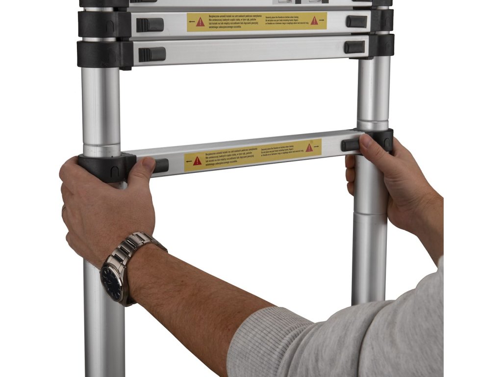 Teleskopický rebrík sa skladá z častí, ktoré sa dajú vysúvať alebo zasúvať, čo umožňuje nastavenie dĺžky rebríka. Vďaka tomu je rebrík všestranný a prispôsobiteľný rôznym úlohám, ako je práca v rôznych výškach alebo na ťažko dostupných miestach. Rebrík je vybavený uzamykacími mechanizmami, ktoré držia časti rebríka na mieste, čím zaisťujú stabilitu a bezpečnosť počas používania. To zabraňuje náhodnému skĺznutiu častí.