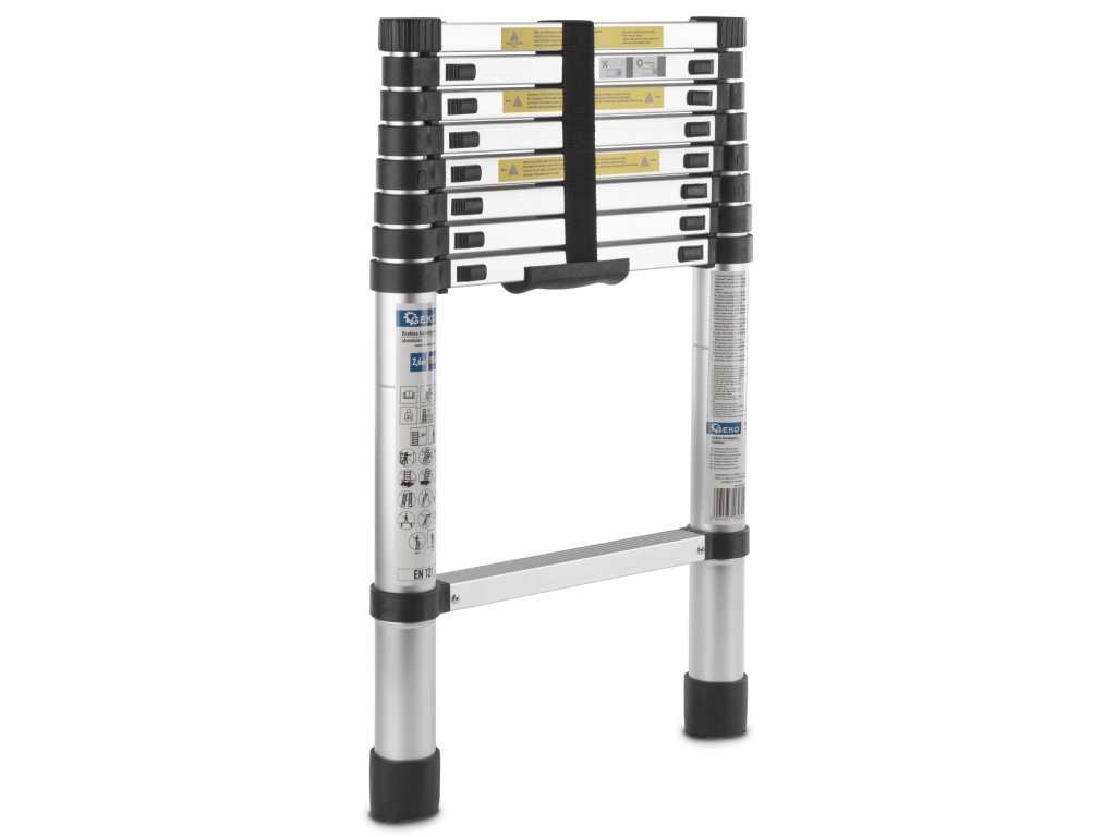 Hliníkový teleskopický rebrík je typ rebríka, ktorý sa skladá a rozkladá, čo vám umožňuje nastaviť jeho dĺžku podľa vašich potrieb. To znamená, že sa dá ľahko skladovať a prepravovať v kompaktnejšej forme.