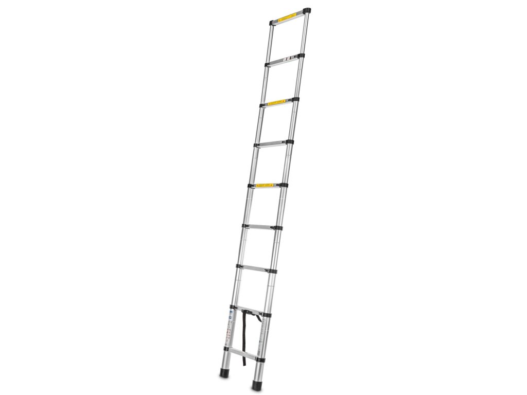 Teleskopický rebrík sa skladá z častí, ktoré sa dajú vysúvať alebo zasúvať, čo umožňuje nastavenie dĺžky rebríka. Vďaka tomu je rebrík všestranný a prispôsobiteľný rôznym úlohám, ako je práca v rôznych výškach alebo na ťažko dostupných miestach. Rebrík je vybavený uzamykacími mechanizmami, ktoré držia časti rebríka na mieste, čím zaisťujú stabilitu a bezpečnosť počas používania. To zabraňuje náhodnému skĺznutiu častí.