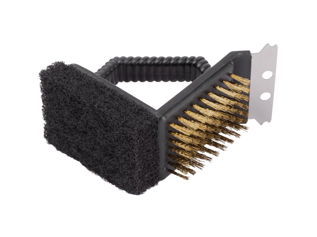 Malá ručná kefa je praktickým prostriedkom pre odstránenie nečistôt z grilu. Má trojuholníkový tvar, pričom každá strana slúži pre iné účely. Jedna strana rúčky slúži na uchopenie kefy. Pre odstránenie najhrubšej špiny sa odporúča použiť kovovú škrabku. Následne pre dodatočné odstránenie jemnejšej špiny a nečistôt použite druhú stranu trojuholníkovej kefy s mosadznými štetami. Mosadzné štetiny sú šetrné k povrchu grilovacieho roštu. Po očistení grilu od všetkých nečistôt použite tretiu stranu, na ktorej sa nachádza hubka. Pomocou hubky je možné kvalitne vyleštiť povrch čisteného grilovacieho roštu, čím zabezpečíte maximálnu čistotu.