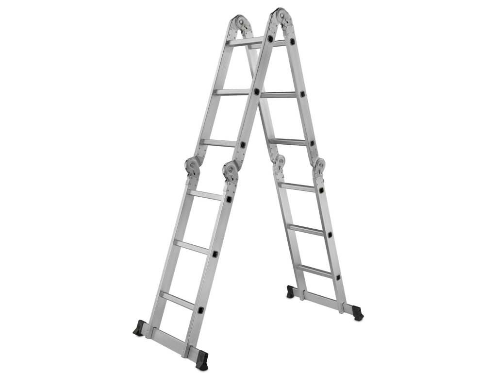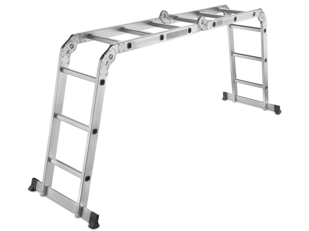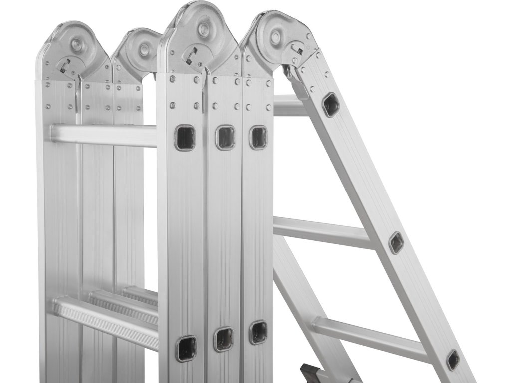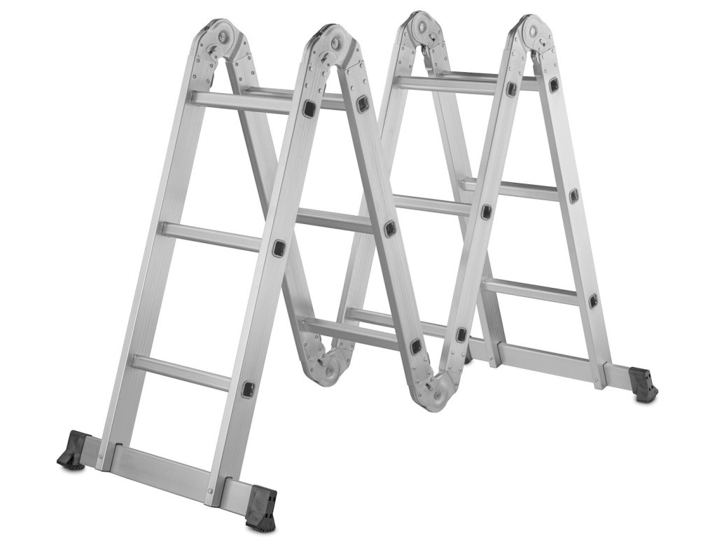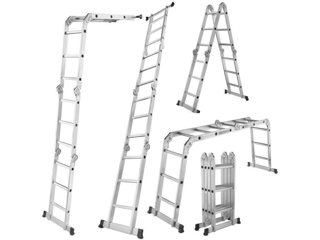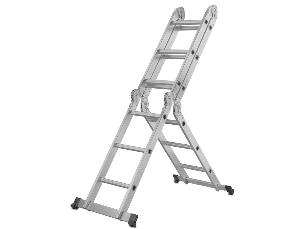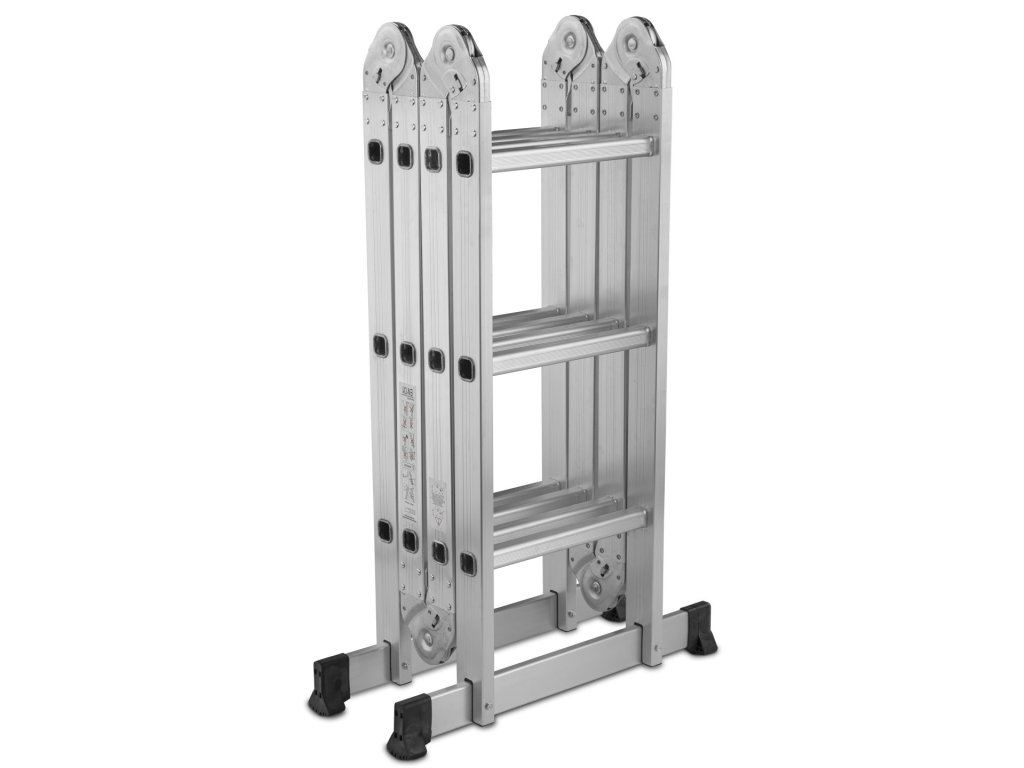 Tento viacúčelový rebrík s rozmermi 4x3 má maximálnu výšku 3,7 m. Spĺňa požiadavky európskej normy PN EN131 s nosnosťou 150 kg na schod. Skladá sa zo štyroch segmentov spojených pevnými a odolnými kĺbmi. Všetky kĺby majú uzamykacie mechanizmy, ktoré umožňujú rýchle a pohodlné nastavenie rebríka podľa vašich potrieb.