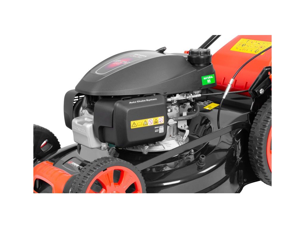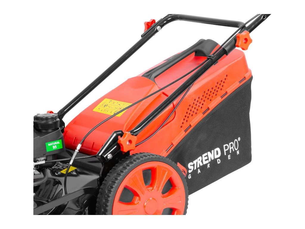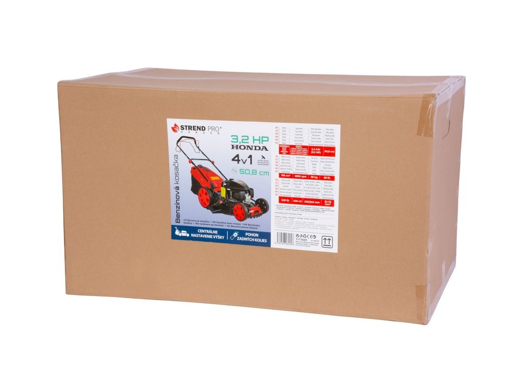 Benzínová záhradná kosačka Strend Pro LMA20S41 s pojazdom určená na kosenie trávy je nevyhnutnou súčasťou každej záhrady. Kosačka je vybavená 4-taktným vzduchom chladeným motorom HONDA GCV170 s obsahom 166 cm3 s menovitým výkonom 2,4 kW (3,2 HP). Kosačka umožňuje vybrať si zo 7 pozícií výšky kosenia v rozsahu 25 - 75 mm. Šírka záberu pri kosení dosahuje 50,8cm. Je tiež vybavená praktickým zberným košom s objemom 60 litrov s ukazovateľom stavu naplnenia. Kosačka pracuje rýchlosťou až 2800 otáčok/min. Stabilný a pevný oceľový skelet je opatrený otvorom pre bočné vyhadzovanie. Vďaka tomu je možné kosiť i ľahko prerastenú trávu, a bez toho, aby sa kosačka hltila a obsluha šliapala v pokosenej tráve. S mulčovacou záslepkou trávu pokosíte na malé kúsky, ktoré následne v tráve plnia funkciu hnojenia. Ručné štartovanie. Motor je vybavený automatickým sytičom pre studený štart. Jednoduchá obsluha.