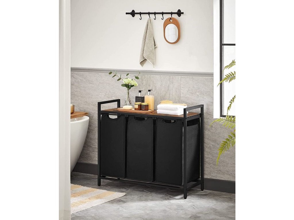 Praktický, trojkomorový kôš na bielizeň a bielizeň s celkovou kapacitou 114 l je vyrobený z veľmi dobre vyzerajúcich MDF lamiel spojených oceľovým rámom. Vhodným výberom materiálov je výrobok odolný voči prípadnému poškodeniu.Kontajner nájde svoje využitie v práčovni, kúpeľni, ale aj v detskej izbe, poslúži ako kôš na hračky. Vneste si domov poriadok ešte dnes s dvojkomorovým košom, ktorý vám uľahčí triedenie bielizne.