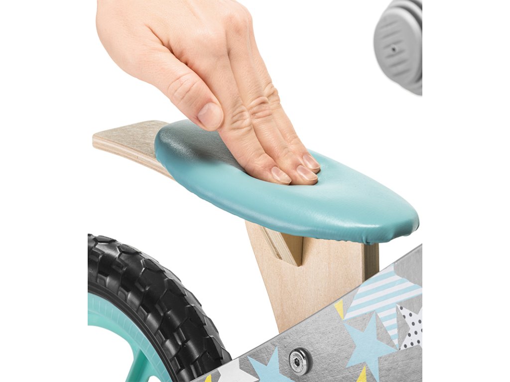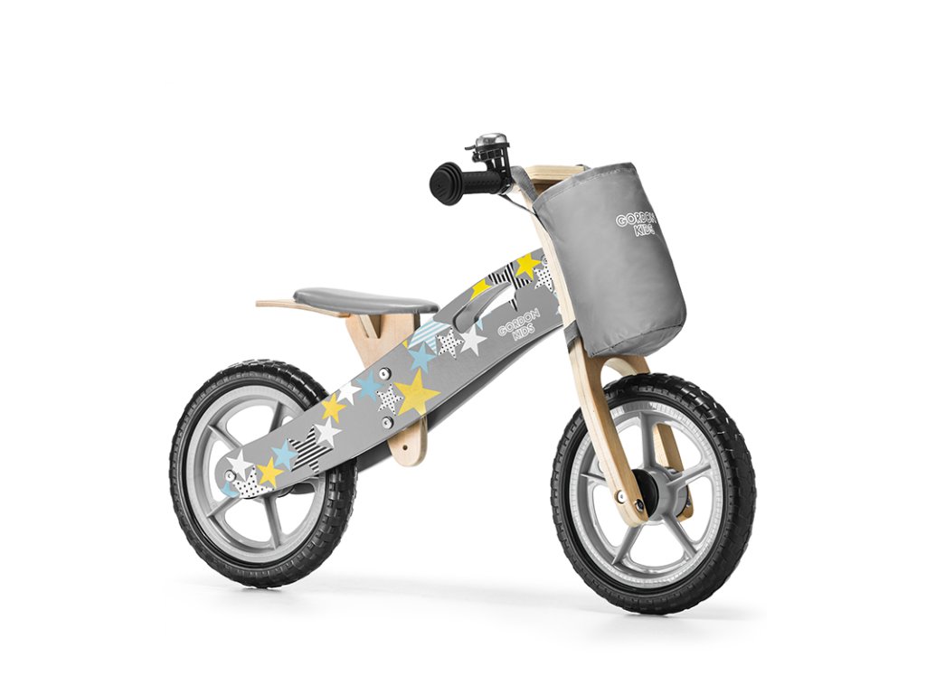 ODRAŽADLO PRE DETI, DREVENÉ S TAŠKOU, PENOVÉ EVA KOLESÁ 12″ RUŽOVÉ