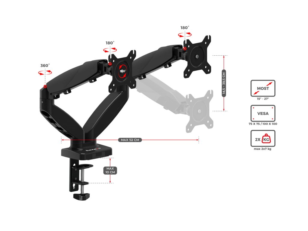 Otočný držiak pre dva monitory Huzaro Motion 2.2