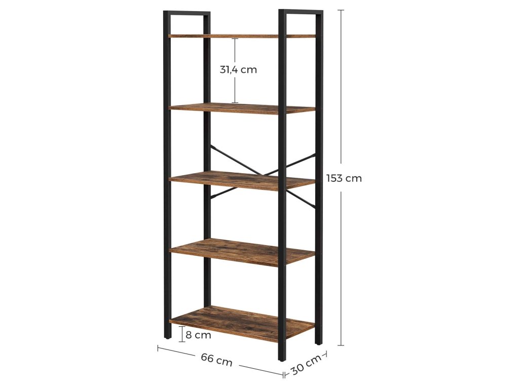 Knižnica je vyrobená v rustikálnom štýle, ktorý je primerane veku. Police knižnice sú stabilné, takže na ne môžeme umiestniť knihy, kvety vo vázach, dekoračné figúrky, detské hračky a rámiky na fotografie.Knižnica sa vyznačuje všestrannosťou a funkčnosťou, skvele zapadne do obývačky, spálne, predsiene, pracovne a 5 políc nám uľahčí prístup k obľúbeným veciam.