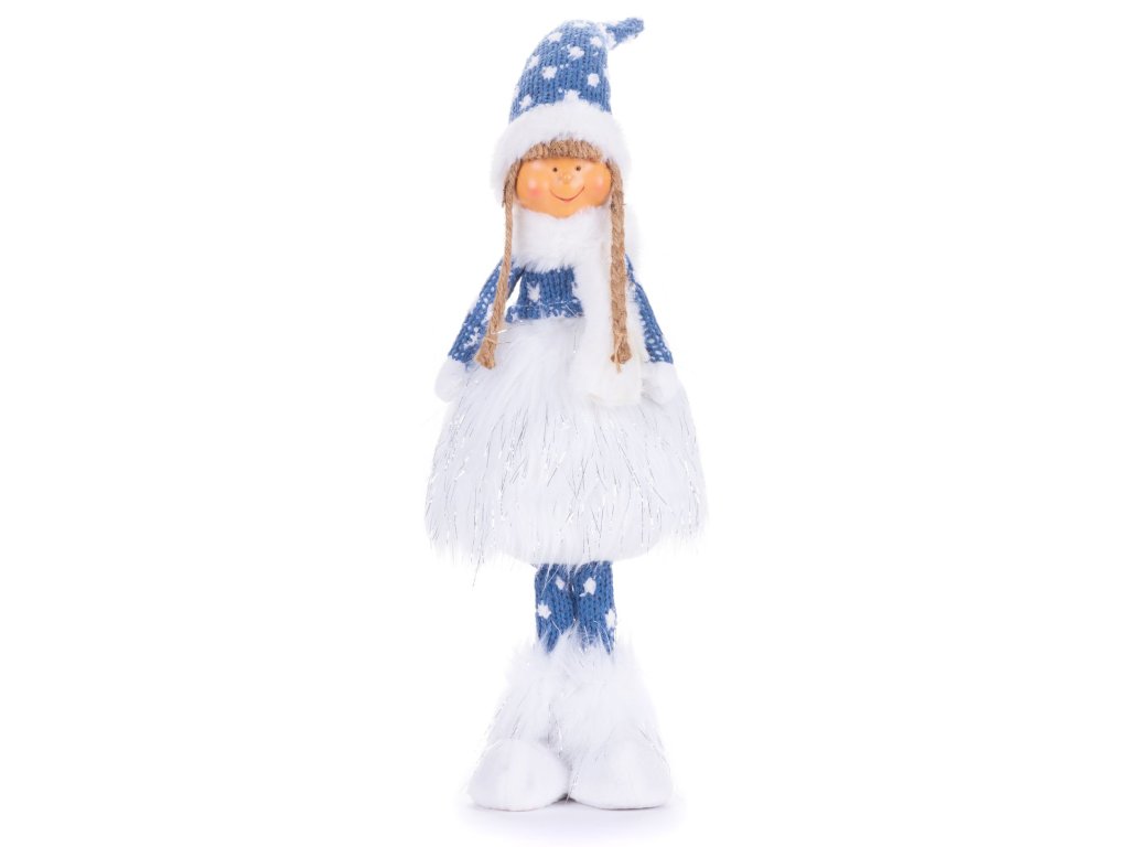 Postavička MagicHome Vianoce, Dievčatko s hustou sukňou, látkové, modro-sivé, 14x11x51 cm
