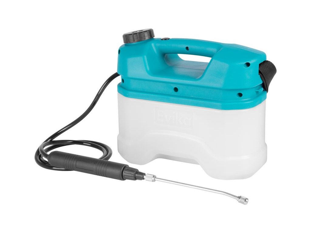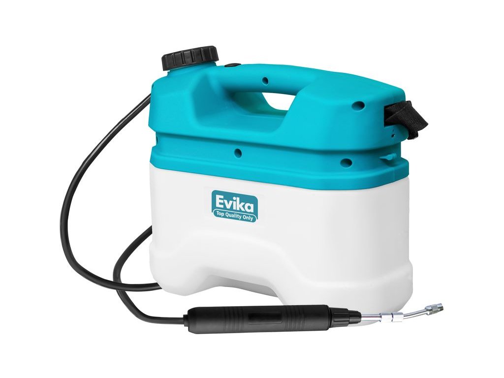 Ľahký, kompaktný a výkonný akumulátorový postrekovač EVIKA je určený na rozstrekovanie poľnohospodárskych a záhradných chemikálií, ktoré slúžia na boj so škodlivým hmyzom a burinou. Akumulátorový postrekovač je vynikajúcou alternatívou k ručným alebo benzínovým postrekovačom. Môžete ho jednoducho a pohodlne použiť doma vo vlastnej záhradke ale aj vo veľkých záhradách s okrasnými či úžitkovými rastlinami. Vďaka vstavanej batérii umožňuje prácu na miestach bez prístupu k elektrickej sieti. Akumulátorový postrekovač umožňuje výrazné zníženie námahy pri prevádzke a získanie vyššej účinnosti ako v prípade ručných postrekovačov. Jednou z najväčších výhod postrekovača je nízka hmotnosť, iba 2,2 kg, takže pri jeho používaní sa príliš neunavíte. Objem nádrže na postrek je 5 litrov, pričom dobá prevádzky je 150 min. Má komfortný popruh a teleskopickú rukoväť, ktorá má dĺžku 26 - 42,5 cm. Nabíja sa priloženým USB káblom, adaptér nie je v balení.Kiegészítő paraméterek