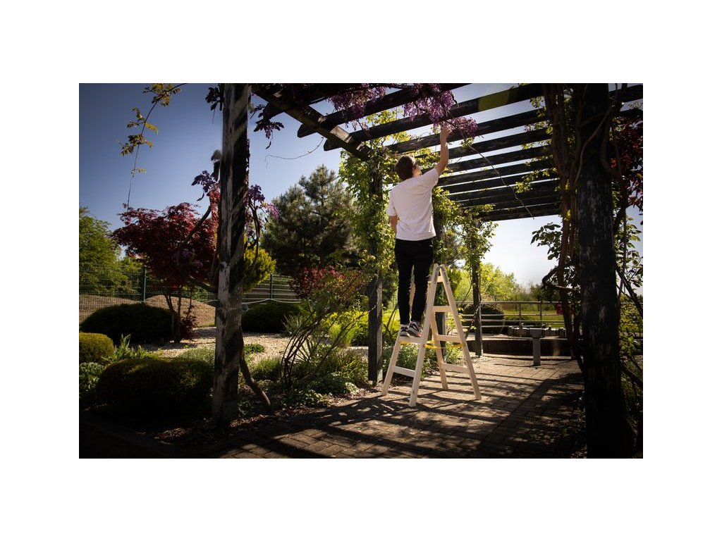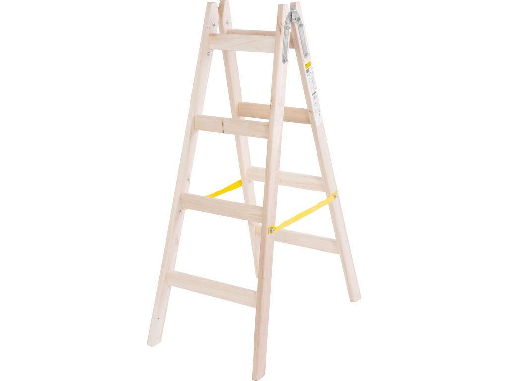 Dvojitý drevený rebrík Strend Pro so 4 priečkami sa vyznačuje pevnou a stabilnou konštrukciou, ktorá zaručuje bezpečnú prácu vo výške. Je vyrobený z impregnovaného dreva a obsahuje aj kovové pozinkované časti vysokej kvality. Skvelou funkciou sú kolmé priečky smerom k zemi pre ešte bezpečnejšie využívanie rebríka. Nylónový pás zamedzuje rozovretiu rebríka. Disponuje praktickým háčikom na zavesenie vedra. Pre domáce použitie. Nosnosť je 150 kg. Vyrobené v EÚ.