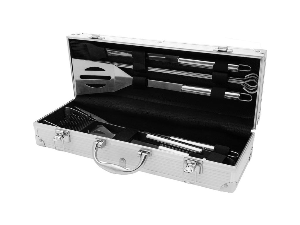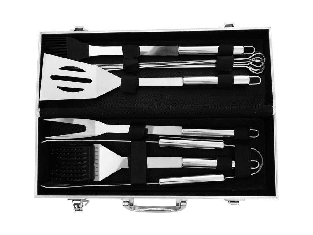 Luxusná sada náradia Strend Pro Grill pozostáva z dvanástich komponentov zabalených v praktickom kufríku. Náradie je vyrobené z nehrdzavejúcej ocele, jednoduchý tvar umožňuje ľahké čistenie. Táto sada určite poteší každého grilmajstra.