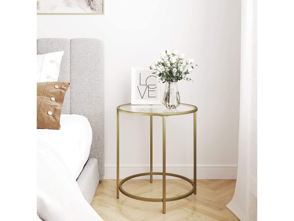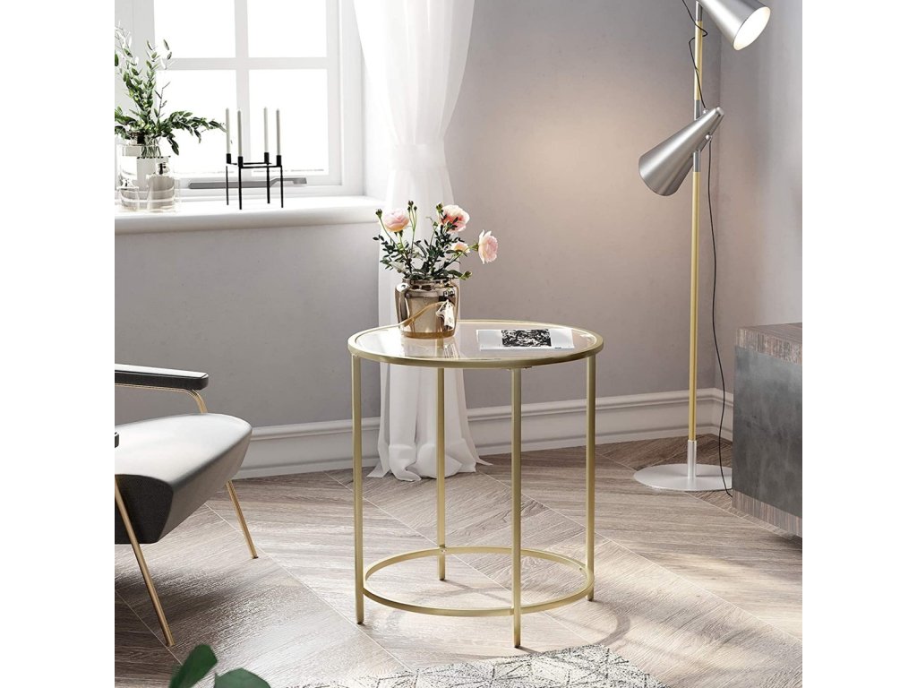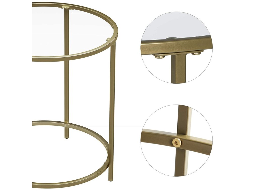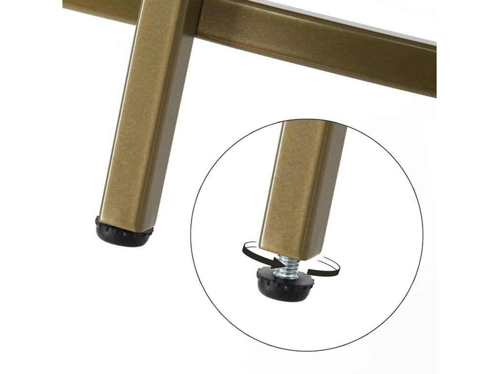 Stolík je vyrobený zo skla a železa, práškovo lakovaný v zlate. Produkt vytvára úžasnú dekoráciu vašej obývačky alebo obývačky.