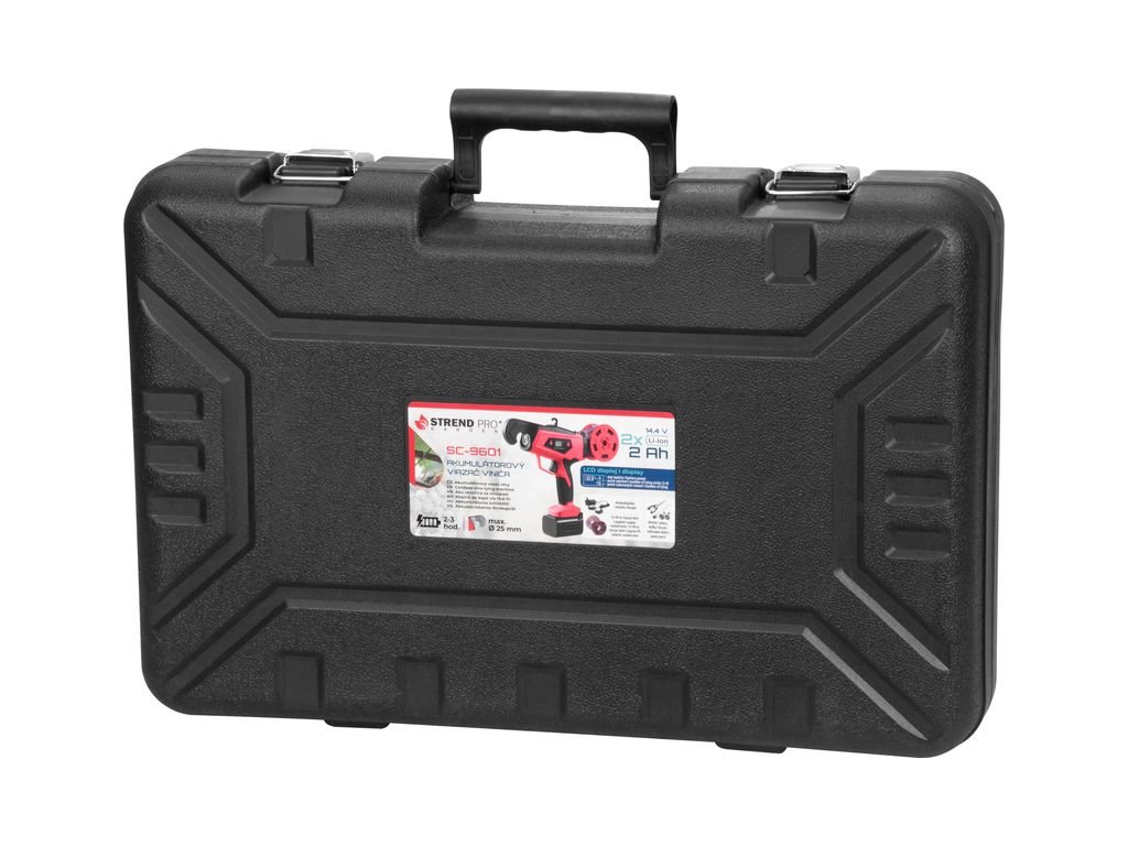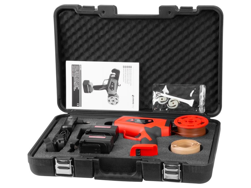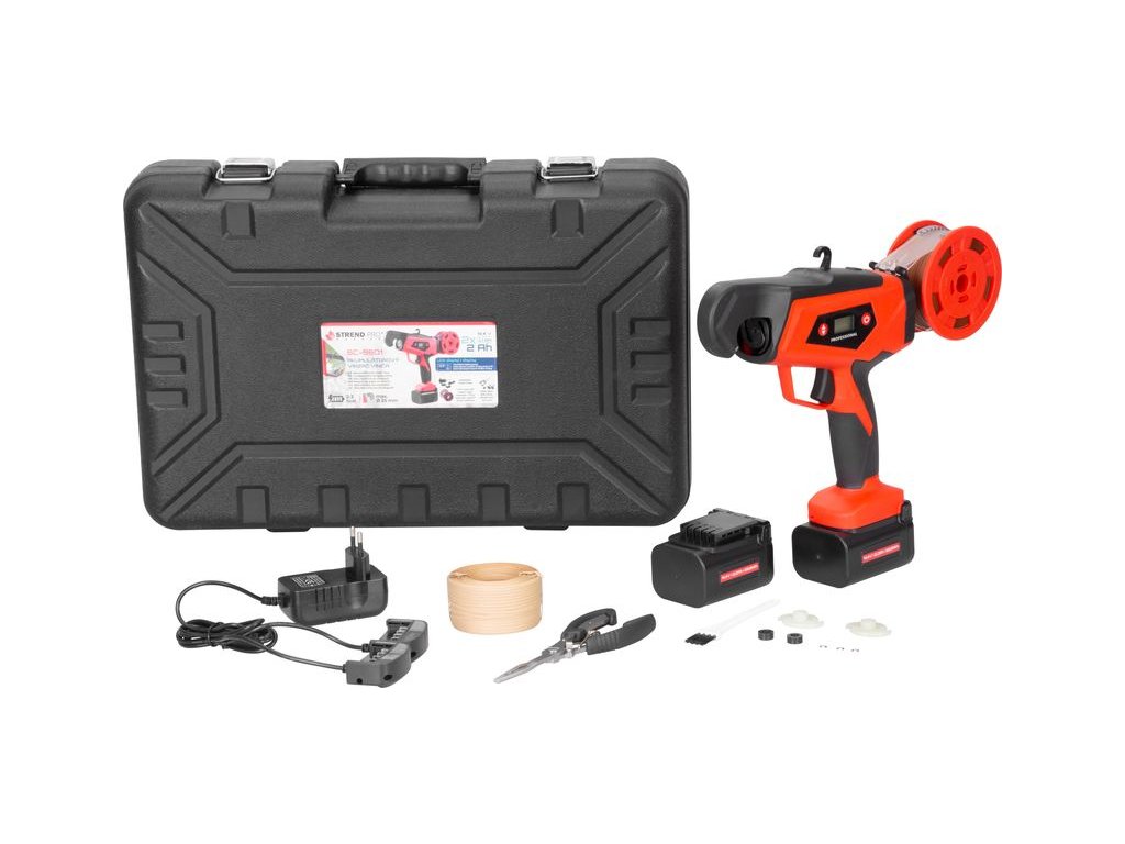 Akumulátorový viazač viniča Strend Pro Profesional s LCD displejom sa používa najmä na viazanie výhonkov viniča (eventuálne ostatných rastlín) s priemerom maximálne do 25 mm. Výrazne uľahčuje prácu vo vinosadoch, práca je nielen jednoduchá, ale uviazaný spoj je aj oveľa kvalitnejší ako pri ručnom viazaní. Na jedno nabitie umožňuje až 8000 uviazaní. Balenie obsahuje: 1x viazač, 2x akumulátor 2.0 Ah, 1x dvojnabíjačku, 1x viazací drôt v papieri, 1x viazací drôt v plaste, kliešte, kefku a náhradné diely.