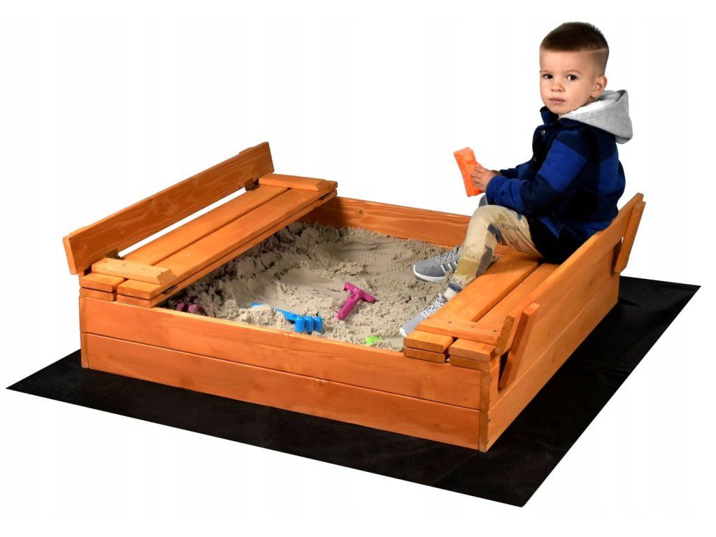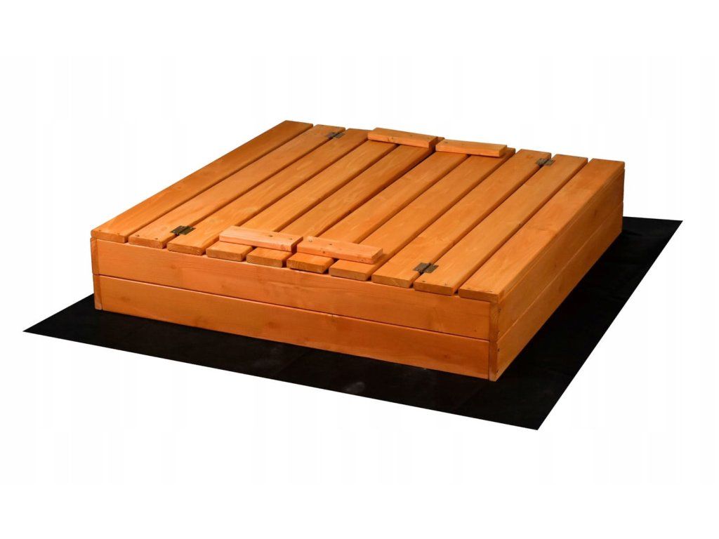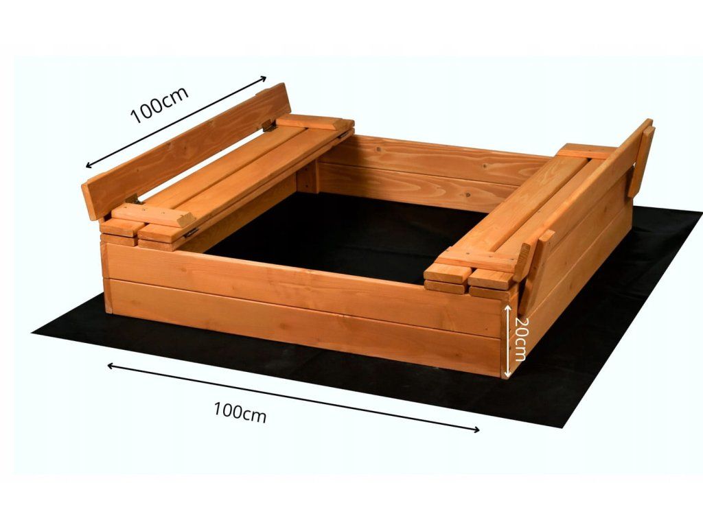 Zárható, impregnált homokozó padokkal 100×100 cm + geotextília + takaróponyva
