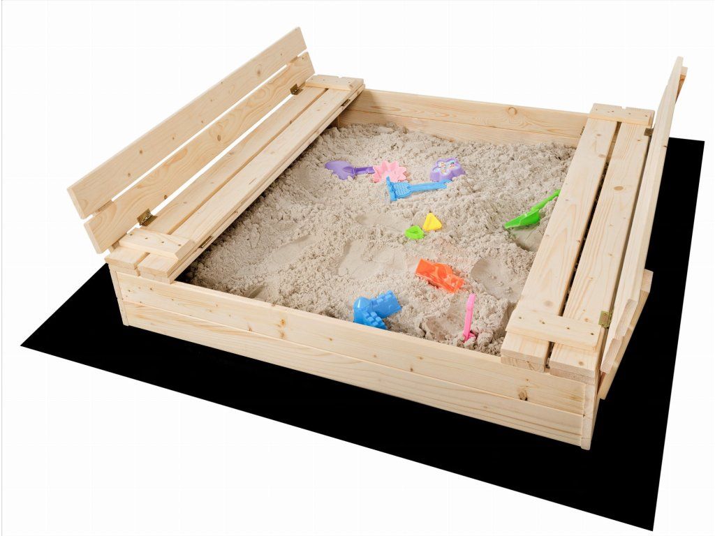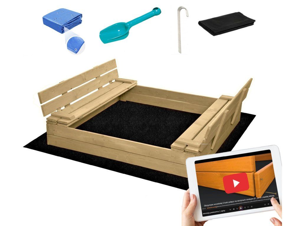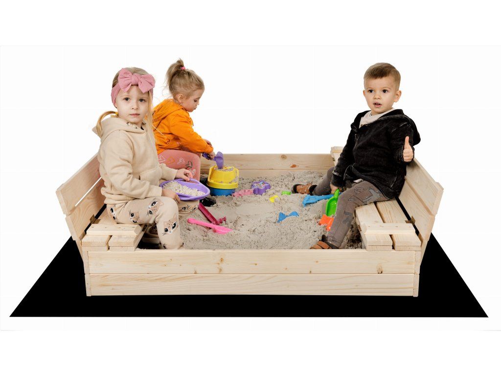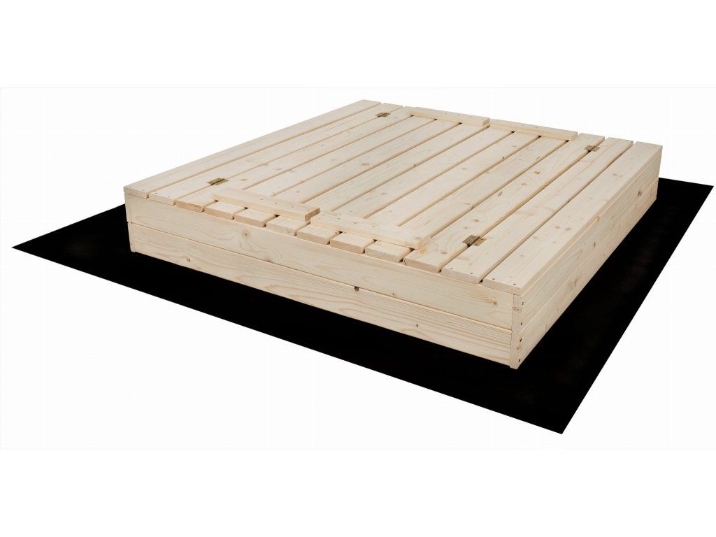 Zárható homokozó padokkal 120×120 cm + geotextília + takaróponyv