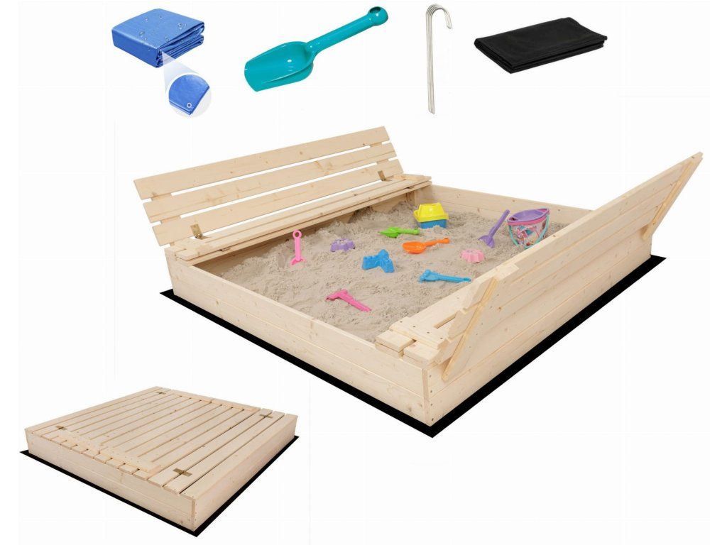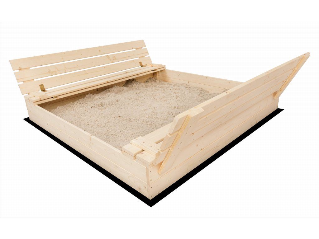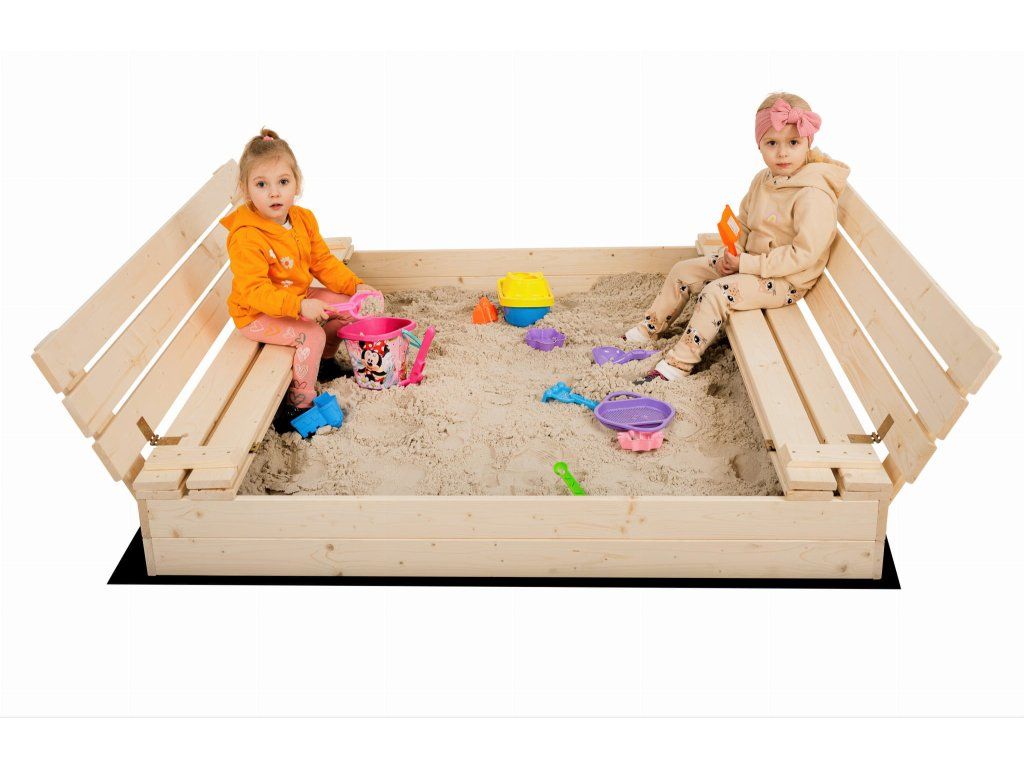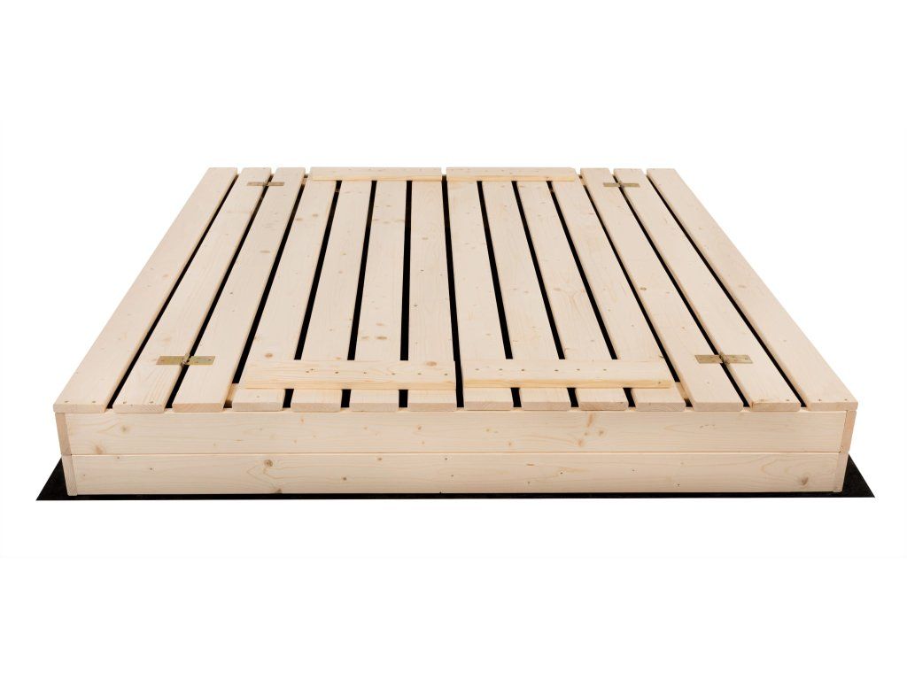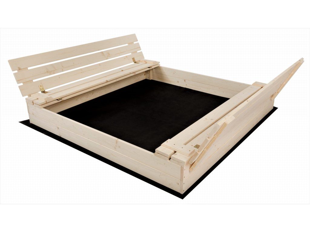 Zárható homokozó padokkal 150×150 cm + geotextília + takaróponyv